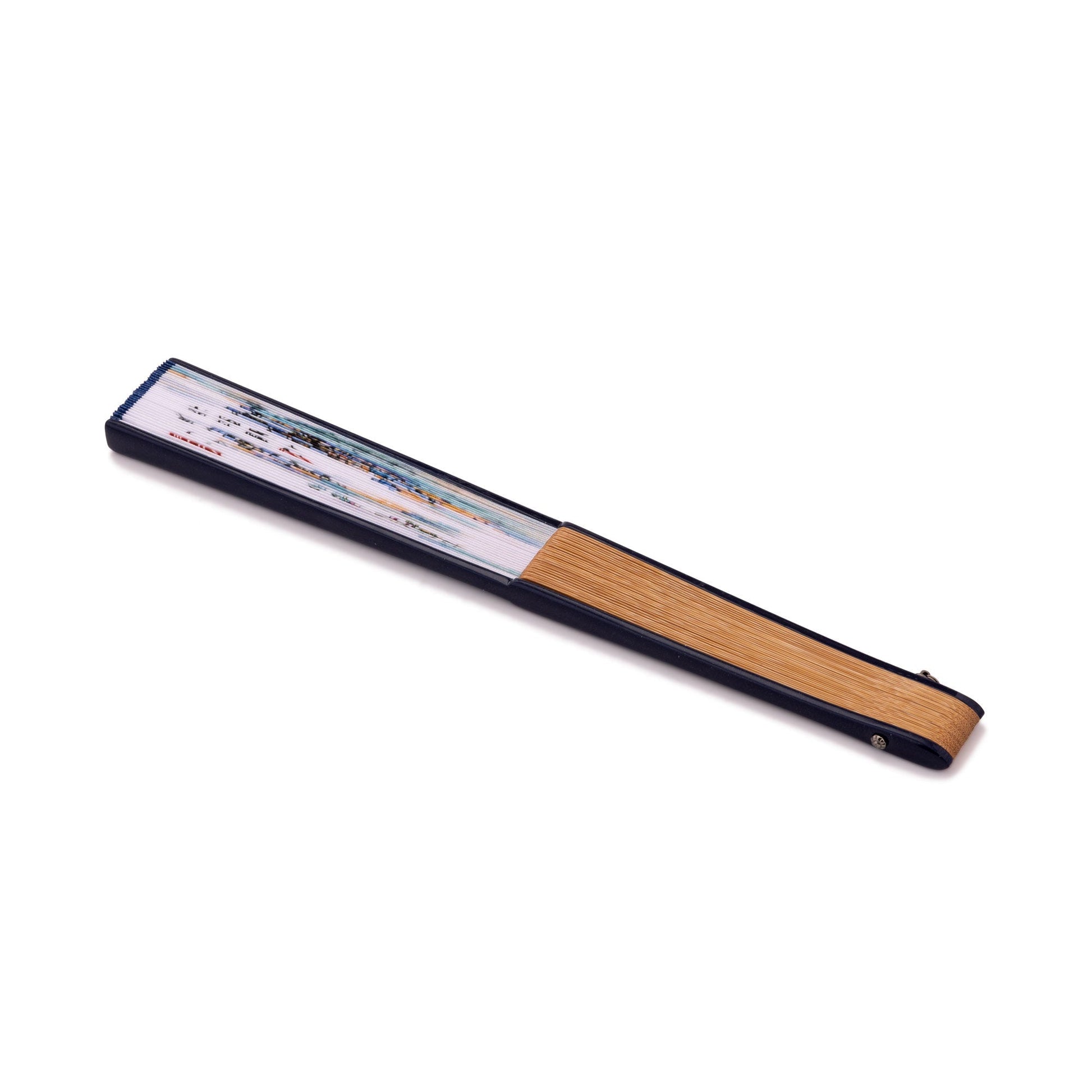 Poem on the fan: The sacred realm of heaven, auspicious and serene light, graceful celestial maidens, and splendid palaces.