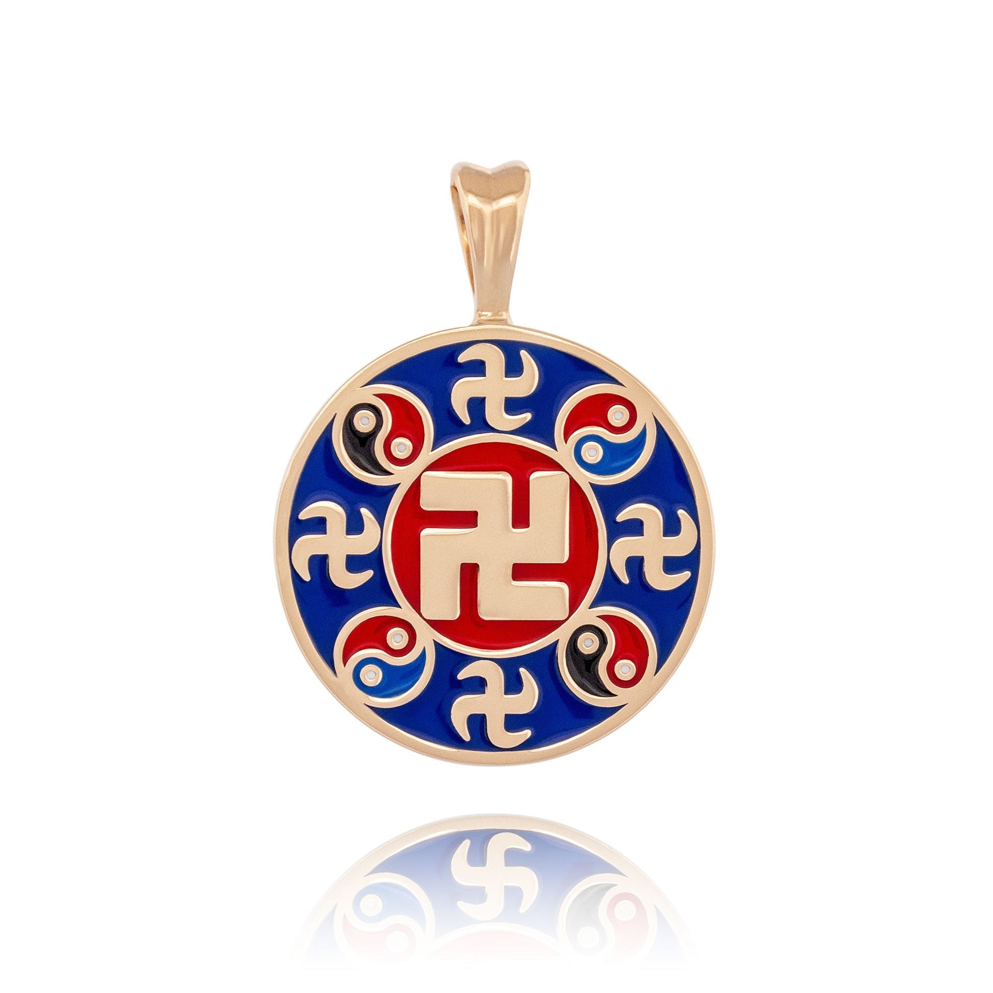 Widely known for thousands of years, the wan symbol signifies a Buddha’s status and is often used to symbolize prosperity and good fortune in many cultures, while the taiji symbol reflects the Taoist theory of yin and yang.