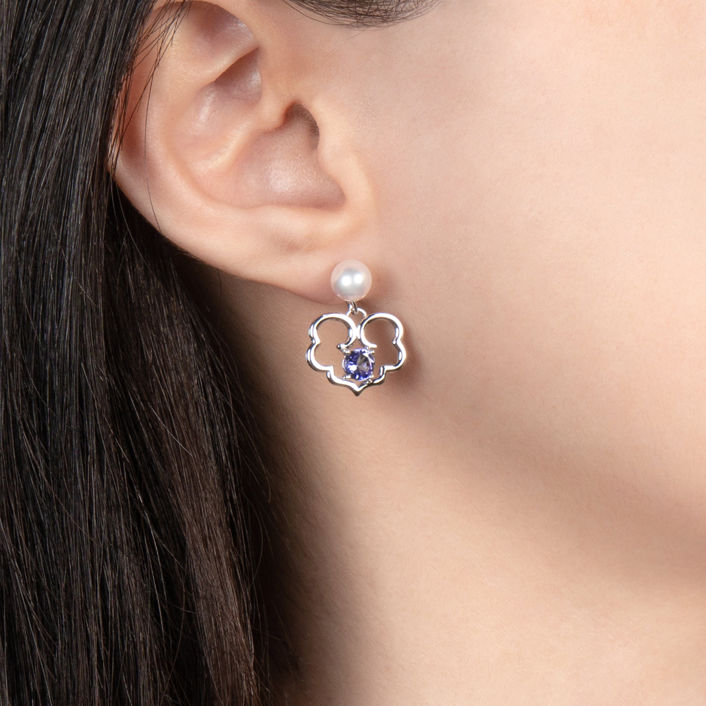 A timeless symbol that represents the realization of one’s wishes and a good future ahead, the blissful Ruyi motif rendered in 18kt white gold is artfully adorned with a mesmerizing Tanzanite gemstone and a fine Akoya pearl in these earrings, adding unparalleled warmth and radiance to any occasion.